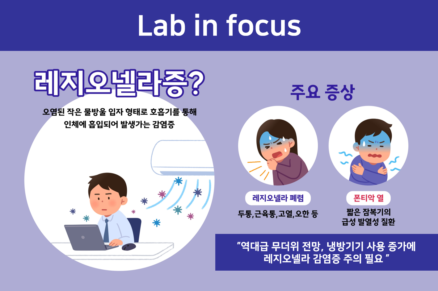 ·¹Áö¿À³Ú¶ó±Õ °¨¿°ÁõÀº Legionella pneumophila¿¡ ÀÇÇØ ¹ß»ýÇÏ´Â ºñ¸» ÀüÆÄ¼º È£Èí±â °¨¿°º´À¸·Î, ÁÖ·Î °Ç¹°ÀÇ ³Ã°¢Å¾, ¿¡¾îÄÁ, »þ¿ö±â, °¡½À±â µî ¹°°ú ¿¬°áµÈ ³Ã¹æ¡¤±Þ¼ö½Ã¼³¿¡¼ Áõ½ÄÇÑ ±ÕÀÌ °ø±â ÁßÀ¸·Î ÆÛÁ® »ç¶÷¿¡°Ô ÀüÆÄµË´Ï´Ù. ƯÈ÷ ³Ã¹æ±â±â »ç¿ëÀÌ ´Ã¾î³ª´Â ¿©¸§Ã¶¿¡´Â ·¹Áö¿À³Ú¶ó±ÕÀÌ ¼½ÄÇϱâ ÁÁÀº ȯ°æÀÌ Á¶¼º...